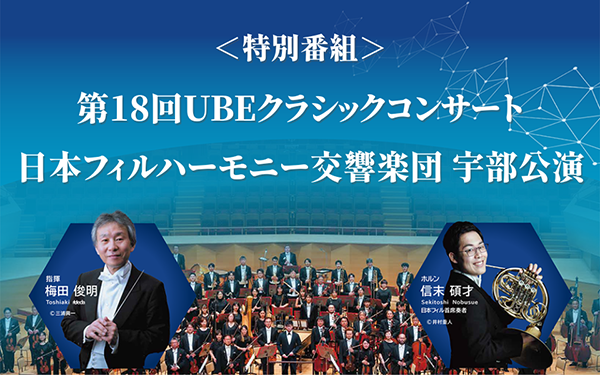 🎵特別番組🎶第18回UBEクラシックコンサート 日本フィルハーモニー交響楽団 宇部公演 投稿者: kouno2025年10月14日pickup、番組情報 番組名 特別番組 第18回UBEクラシックコンサート 日本フィルハーモニー交響楽団 宇部公演 放送日時 2025年10月25日(土) 20:00~20:55 内容 2025年10月12日(日)、宇部市渡辺翁記念会館で行われた「第18回UBEクラシックコンサート 次世代音楽文化振興事業 日本フィルハーモニー交響楽団 宇部公演」の模様をお届けします。