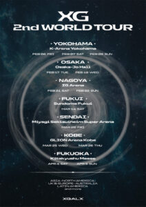XG WORLD TOUR: THE CORE 投稿者: kouno2025年12月8日2025年12月8日pickup、ライブ情報 XG WORLD TOUR: THE CORE 公演日時 2026年4月4日(土)16:30開場/18:00開演 2026年4月5日(日)15:30開場/17:00開演 会場 北九州メッセ チケット 全席指定 15,000円(税込) ※3歳以上有料、3歳未満入場不可 ※駐車場がございません。お車でのご来場はご遠慮ください。 発売日 2026年1月17日(土)10:00~ お問い合わせ キョードー西日本 tel.0570-09-2424 ■ XG Official Site ■