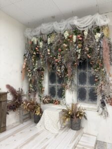 4店舗それぞれに個性あるスタジオセットを備えてあって、下松店はヨーロッパガーデン風の華やかな空間から和風モダンな落ち着いたセットまで多彩なセットを用意しているのでご家族の思い出に残る撮影ができます。様々な雰囲気のセットがあって和装や洋装にも合うようにスタジオセットのスタイリングは定期的にアレンジしているのでご利用するたびに新鮮な気持ちで撮影できますよ。