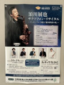 10月の直近では、「須川展也 サクソフォン・リサイタル〜アンサンブルで綴る『銀河鉄道の夜』〜」を開催します。サクソフォンの第一人者で、国内外で活躍する須川展也さんが、ソロからアンサンブルまで多彩な演奏を披露するコンサートです。