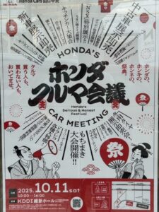 第26回リポートの舞台は、ゼロスタジオから目と鼻の先にある、山口市産業交流施設”KDDI維新ホール”です。こちらで10月11日(土)に車好き必見のイベントが行われるということです。ホンダカーズ山口中央の田村さんにお話を伺いました。