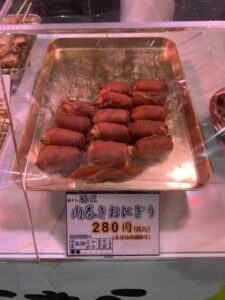 まーちゃんのおすすめのグルメその①、肉巻きおにぎりです。北海道グルメ、海鮮も魅力的ですが、豚丼は十勝帯広の名物です。今回の山口井筒屋秋の北海道物産展の会場でも、その場で焼いた、”豚どん豚匠の十勝帯広の名物豚丼”が実演販売されていて毎年楽しみにしている、というファンも多いです。美味しさのポイントはオリジナルのタレです。その豚どん豚匠さんが山口井筒屋限定で販売しているのが、オリジナルのタレを使用した”豚どん豚匠の肉巻きおにぎり”です。この肉巻きおにぎりは、大きさも丁度良く、オリジナルなタレと食べ応えのある豚バラなのに、お値段もリーズナブルな1つ280円。とても美味しいので是非いろんな方にも食べて頂きたい一品です。