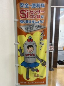 10月1日から1月31日まで「LPガスってぶちええね!キャンペーン」を開催中です。キャンペーンに参加しているLPガス販売店で、Siセンサーコンロや、ハイブリッド給湯器などの高効率給湯器、ガスファンヒーターなどの暖房機器、最近話題のガス衣類乾燥機などのキャンペーン対象商品をご購入いただいた方の中から抽選で180名の方にクオカードをプレゼントするというキャンペーンです。内訳は、10名様に10,000円、20名様に5,000円、150名様に1,000円分のクオカードが当たります。対象商品など詳しくはキャンペーンチラシをご覧ください。(※チラシはキャンペーンに参加しているガス販売店でお渡ししています。参加店は店頭に幟を飾っています。他、山口県LPガス協会のホームページでも確認できます。)