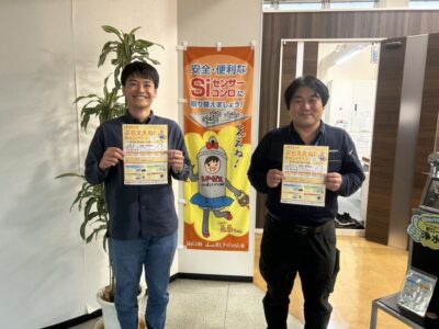 10月1日から1月31日まで「LPガスってぶちええね!キャンペーン」を開催中です。キャンペーンに参加しているLPガス販売店で、Siセンサーコンロや、ハイブリッド給湯器などの高効率給湯器、ガスファンヒーターなどの暖房機器、最近話題のガス衣類乾燥機などのキャンペーン対象商品をご購入いただいた方の中から抽選で180名の方にクオカードをプレゼントするというキャンペーンです。内訳は、10名様に10,000円、20名様に5,000円、150名様に1,000円分のクオカードが当たります。対象商品など詳しくはキャンペーンチラシをご覧ください。(※チラシはキャンペーンに参加しているガス販売店でお渡ししています。参加店は店頭に幟を飾っています。他、山口県LPガス協会のホームページでも確認できます。)