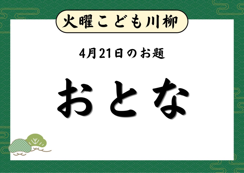 【募集中】火曜こども川柳 投稿者: COZINESSスタッフ2026年4月14日 火曜日の午後5時5分は新コーナー「火曜こども川柳」!! こどものこどもによるこどものための川柳コーナーです。 参加対象は “こども” です。(高校生くらいまで) こどものみなさん、毎週出すお題の川柳にチャレンジしてみませんか? 第三回4月21日(火)のお題は 「おとな」 優秀作品は大和良子が手書きしてゼロスタに掲示します。 応募はメールで受け付けています。 ≪番組メールフォーム≫から投稿してください。 理由やエピソードも入れておいてくださいね。 キミの力作を楽しみに待っています!!