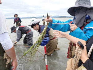 この時、干潟の上にアマモが寝ているような状態で見えるため、一般の方々も安全に観察することができます。実際にアマモ場を見て、生物と触れ合えた参加者からは「とても良かった」という感想が寄せられています。