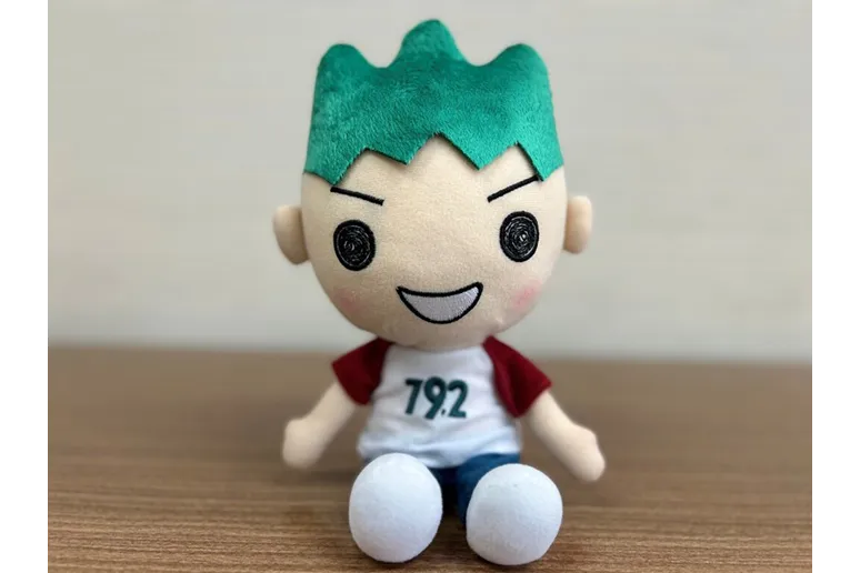 開局20周年に登場したエフエム山口のキャラクター、緑山タイガのぬいぐるみ。