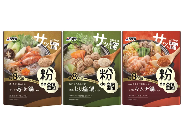 シマヤ粉de鍋、サッとお好みの濃さに!量に!お一人で、ご家族で、ちょっとだけ濃く、薄く。粉だから使い勝手抜群。
