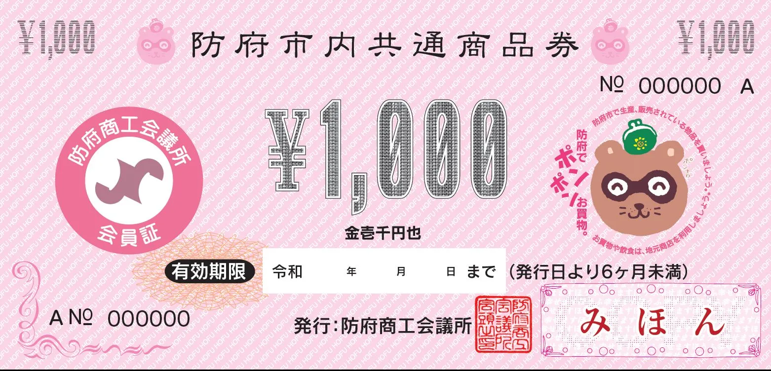 防府商工会議所会員事業所でご利用いただける共通商品券。