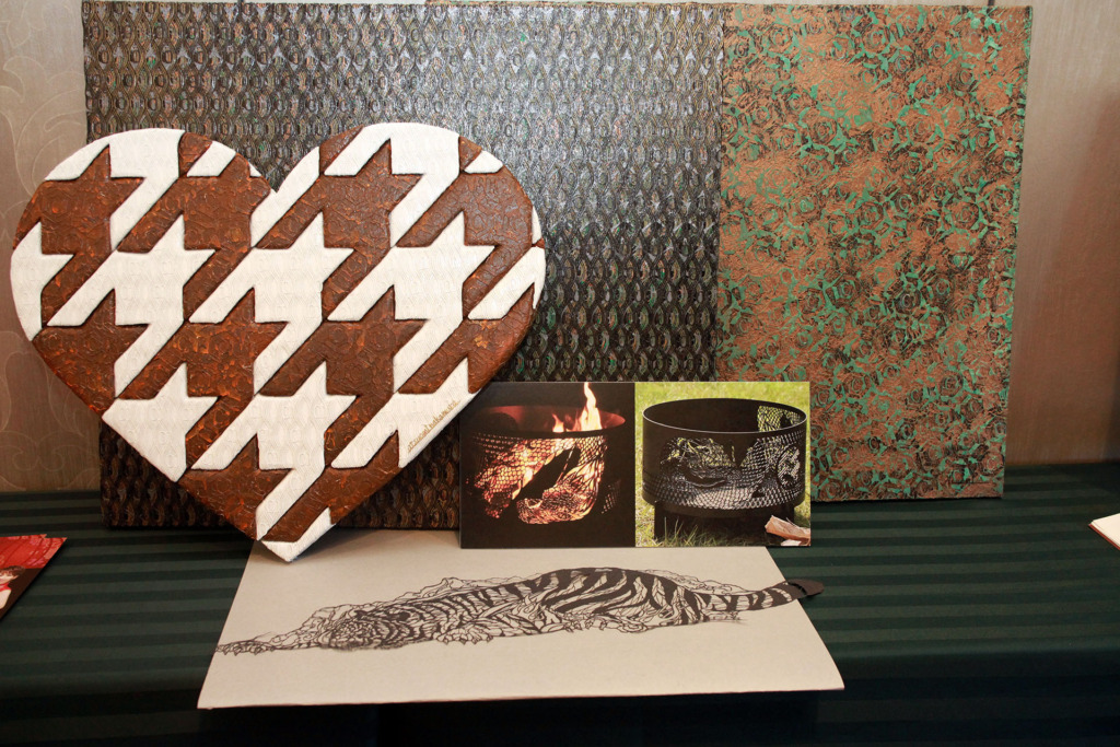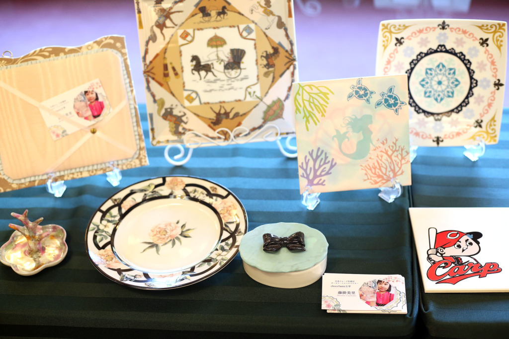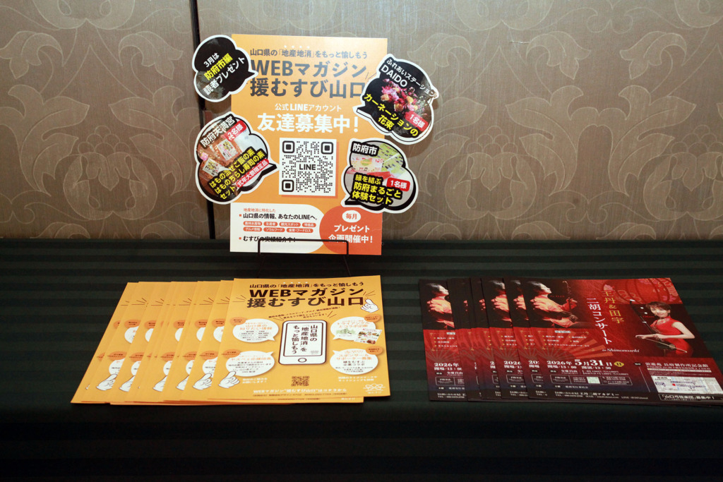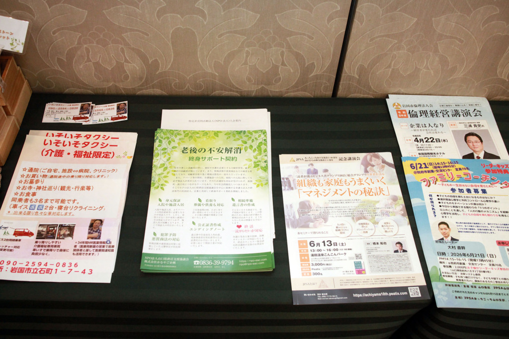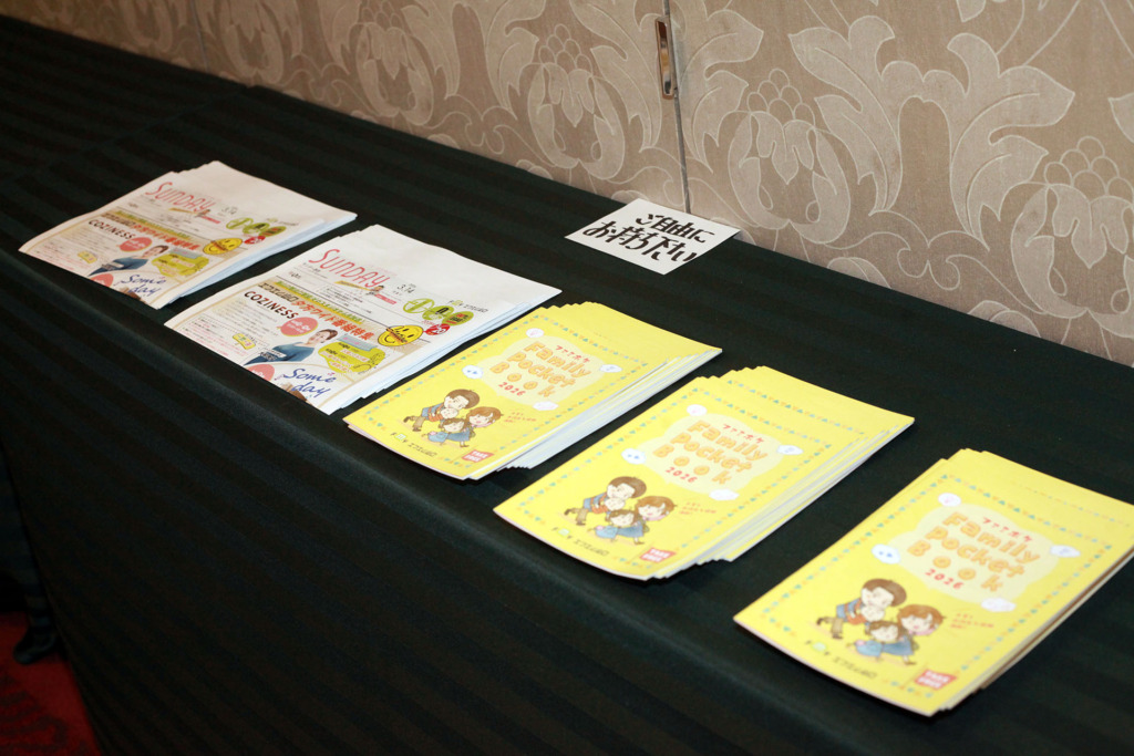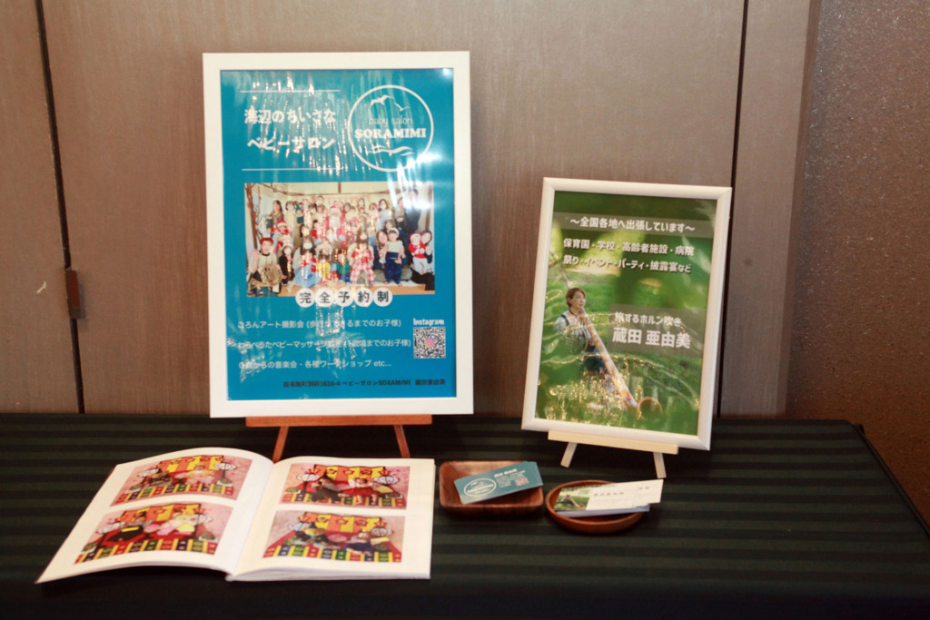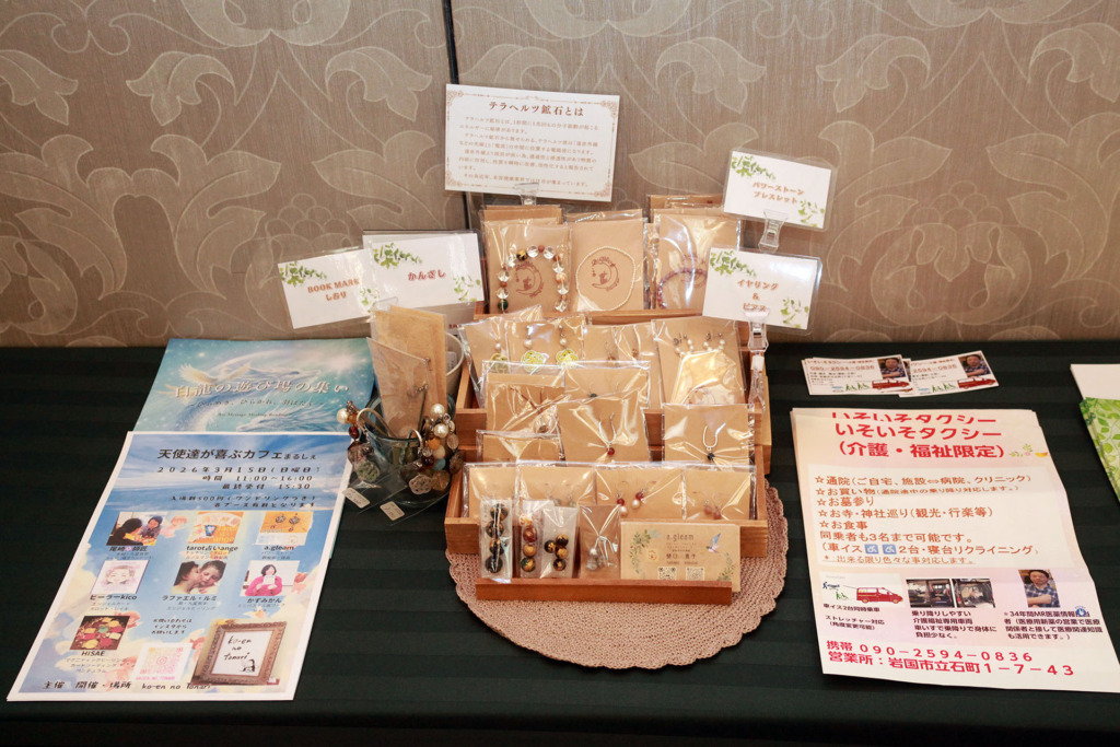 会場には、会社紹介のパンフレットや魅力的な商品、多くの作品やアーティストのCDなどがズラリ!