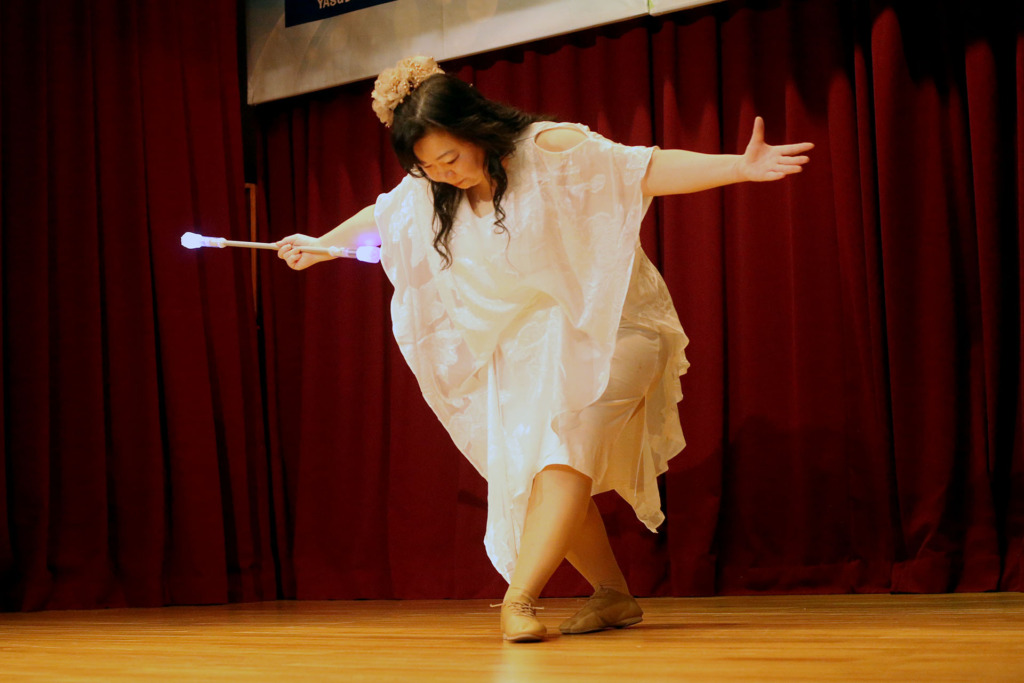 スポーツクラブ運営の白木美香さんは、お得意のバトンパフォーマンスを披露♪