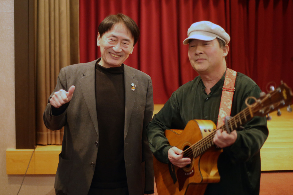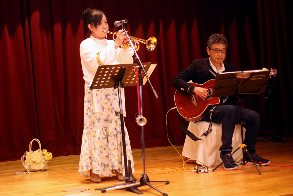 “トランペットよりこ”の愛称で活動する看護師寄本和美さんが、お仲間の河内誠さんと名曲「ハナミズキ」を歌と演奏でしっとりと♪