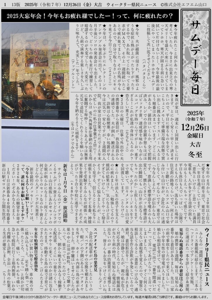 12月26日(金)メールテーマは・・・ 2025大忘年会!おつかれさまでしたー!って何に疲れたの? […]