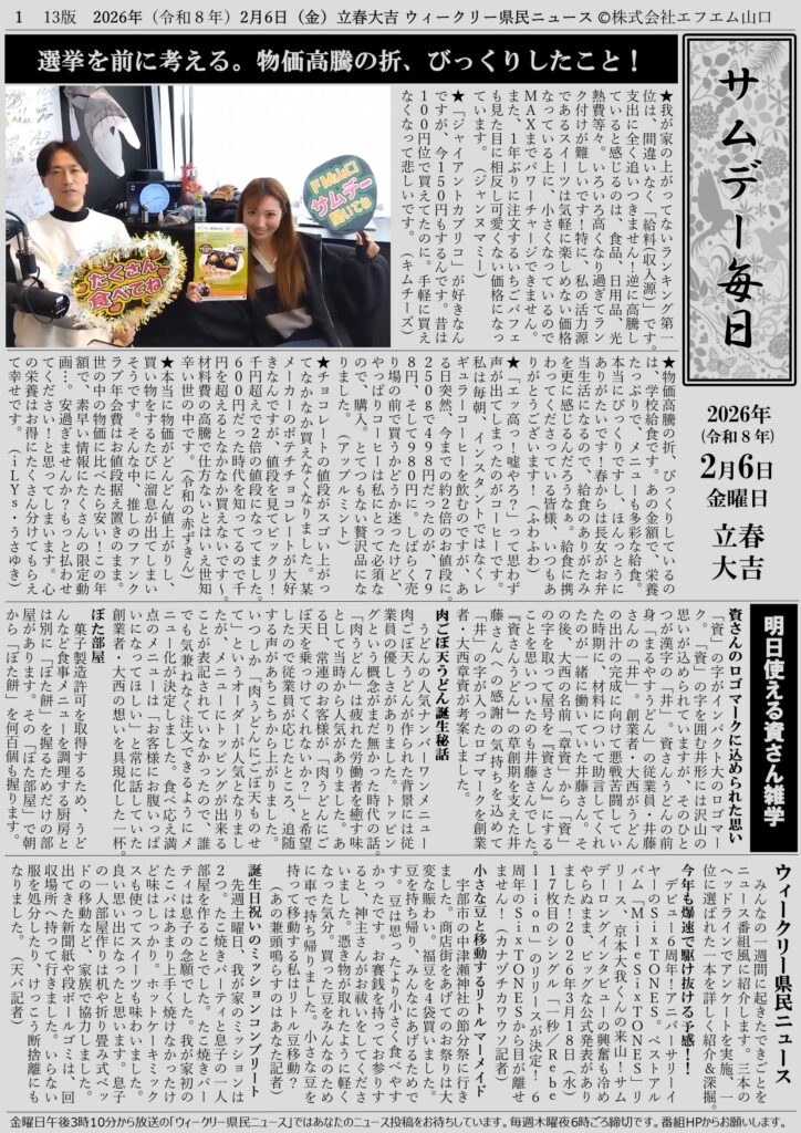 午後5時35分から放送「#きのう何うどん食べた?」のコーナー 2月13日(金)後半テーマは「資さん山 […]